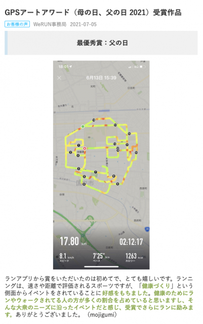 WeRUN GPSアートアワードで最優秀賞に